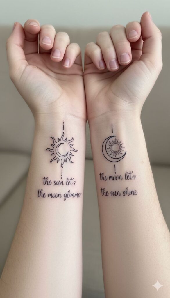 This approach works great with tattoo matching best friends sun and moon designs because it adds a personal story.