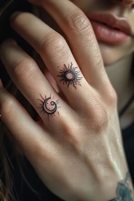 Want something bold but still intimate? Sun and moon tattoo matching best friends finger tattoos do exactly that.