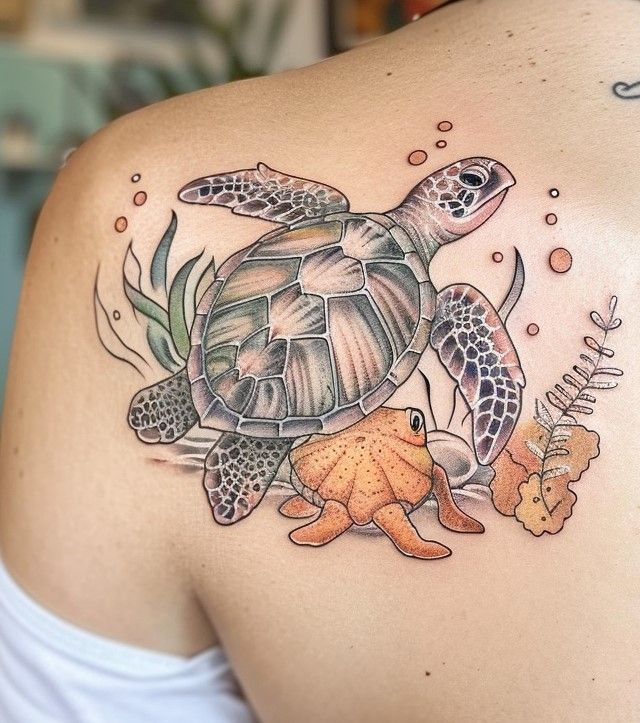 Matching turtle tattoos feel perfect for close bonds. Best friends, siblings, or couples often choose turtles because they represent loyalty and long-lasting connection. I’ve always liked tattoos that grow stronger with time.