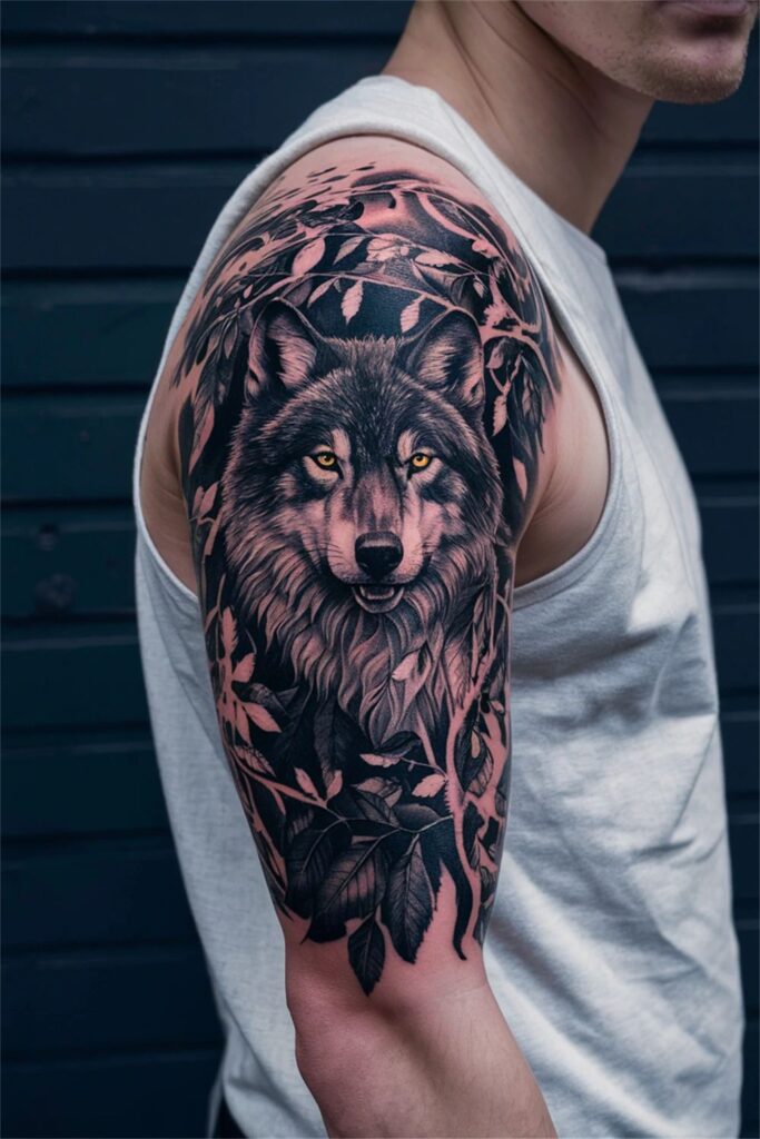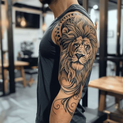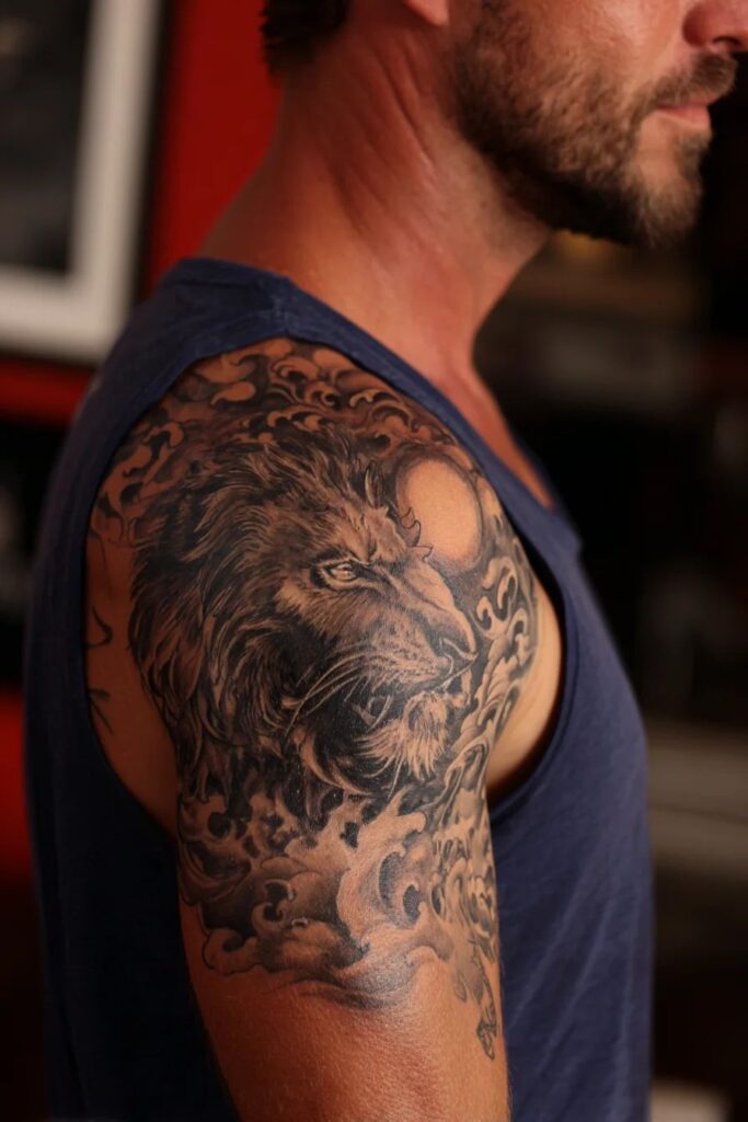 I’ll say it straight—lion tattoos never go out of style, and I don’t care what anyone says. A lion half sleeve on the upper arm instantly screams leadership and confidence.